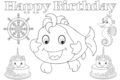 Die Geburtstag Ausmalbilder gratis Bastelvorlagen und Malbuch Vorlagen im DIN A4 PDF Dateien Format zum Downloaden, Ausdrucken und Ausmalen befindet sich Oben unter dem passenden Bild zum Ausmalbild. Schöne, Coole, Lustige, Tiere, Fische Aquarium, Unterwasser, Kanal, Fluß See, Meer und Comic. Fische Motive: Aal, Karpfen, Forelle, Flunder, Barsch, Dorsch, Kabeljau, Hering, Zander, Hecht, Heilbutt, Lachs, Makrele, Rotbarsch, Scholle, Stör, Muräne, Dorade, Barbe, Wels, Pangasius, Schellfisch, Wolfsbarsch, Zitronenfisch, Mondfisch, Clownfisch, Haie, Delfine, Wale, Nemo, Dorie, Goldfisch, Regenbogenfisch, Meerestiere, Krebse, Krabben, Seesterne, Quallen und Seepferdchen.